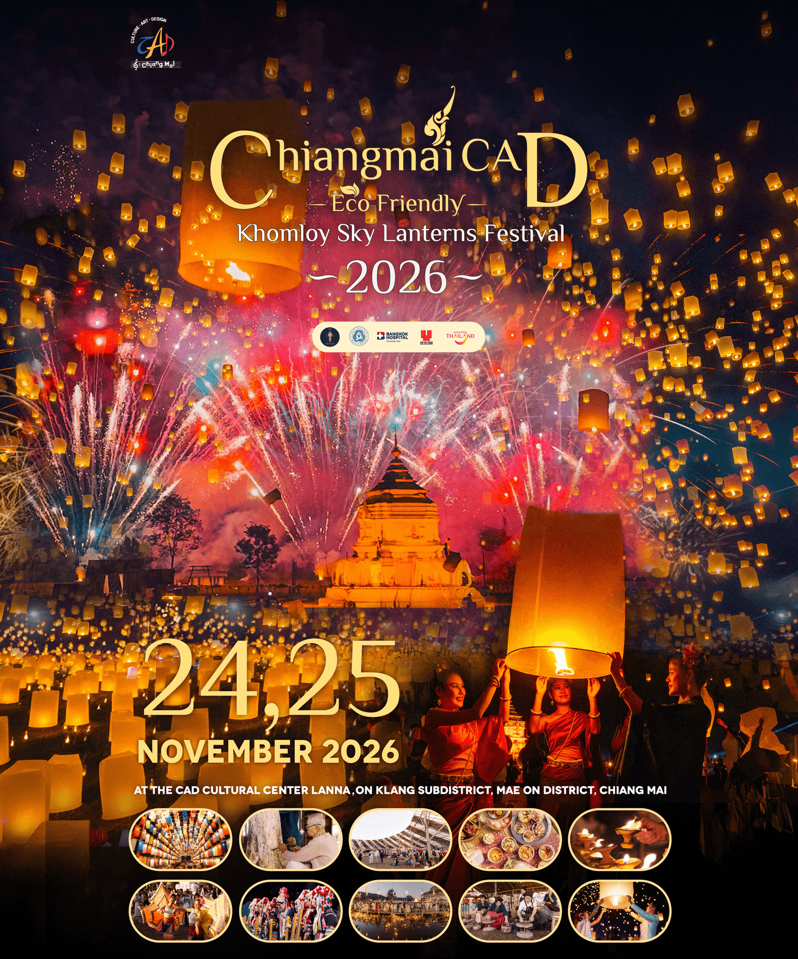 Chào mừng bạn đến với lễ hội thả đèn trời 2026 tại Chiangmai được tổ chức bởi Chiang Mai Arts and Design (CAD). Sự kiện tuyệt vời này đã được tổ chức thành công rực rỡ rất nhiều năm và mang lại hân hoan và mãn nguyện cho tất cả du khách trên thế giới đến tham dự.